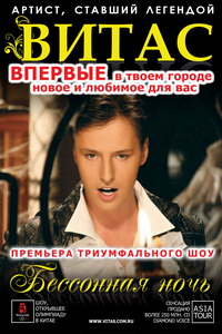 A skilled performance of the world masterpieces such as «Nessun Dorma», «La donna mobile», «Ave Maria», «O sole, mio» in Italian, the famous songs «The Tibetan Plateau», «Jasmine Flower» in Chinese and, of course, a series of author’s compositions by Vitas, created for the premiere, prepared an unusual success in the Artist’s new work: SLEEPLESS NIGHT is a premiere which will be presented to your attention, the premiere which is being waited for in the world.