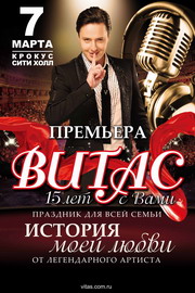 2014 was the first large author, composer, artist’s anniversary. Vitas started preparing for creation of a new bright author’s program “Story of my love. 15 years with you”. This is the premiere, which will take place in a large hall “Crocus City Hall” in Moscow in March, 2014, with the participation of the Large Symphonic Orchestra from St. Petersburg, the ballet “MaryDance” and the instrumental band “DIVA”.